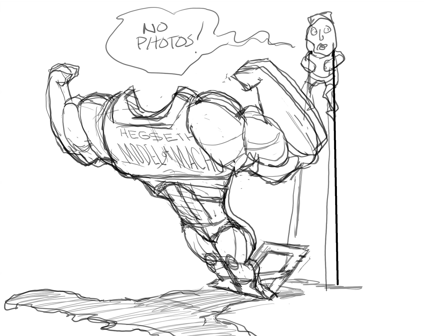 I like the looseness of your preliminary drawing as well, nice and organic…but I think since we are talking Pete Hegseth…that stiffer approach works perfectly! Thank you, Kal❣️ Great cartoon❣️💫